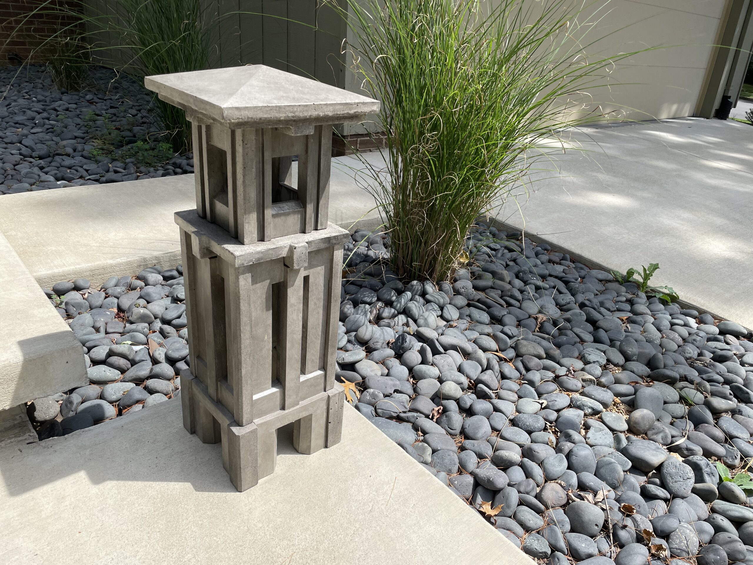 Cast stone artisan lantern for lighting and decor.